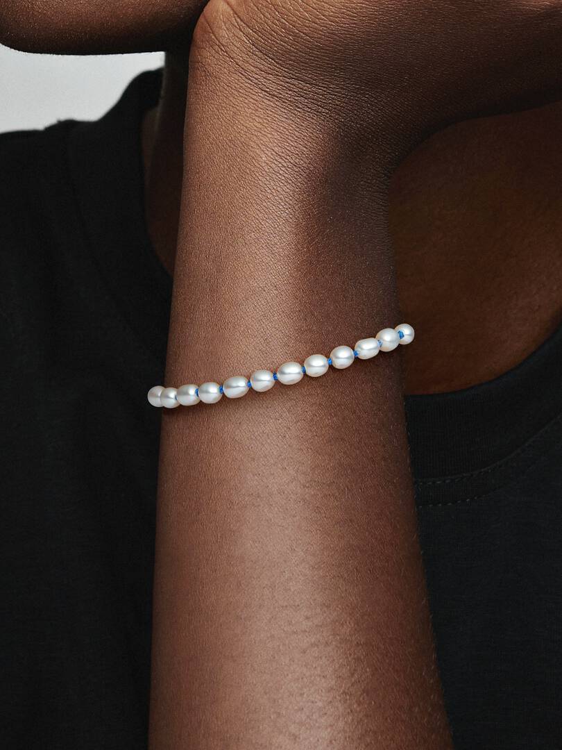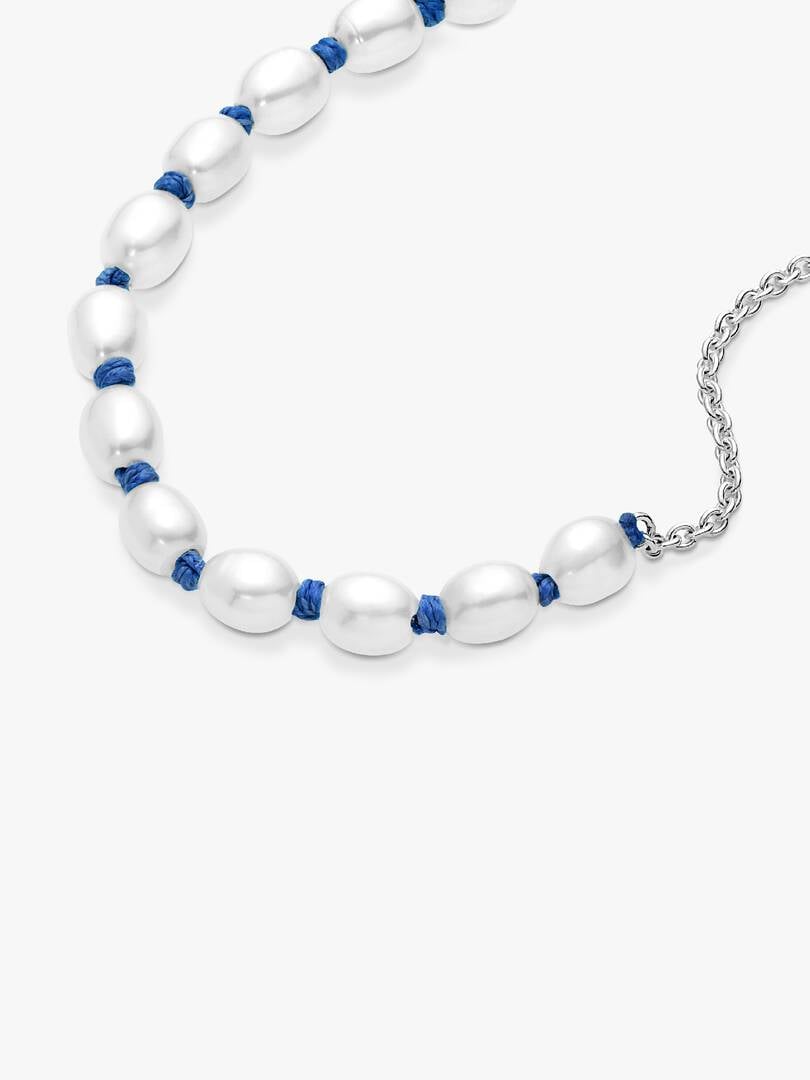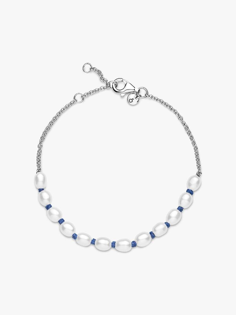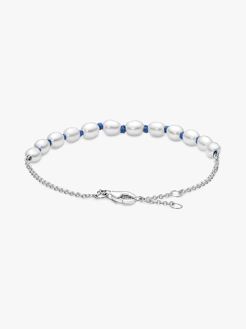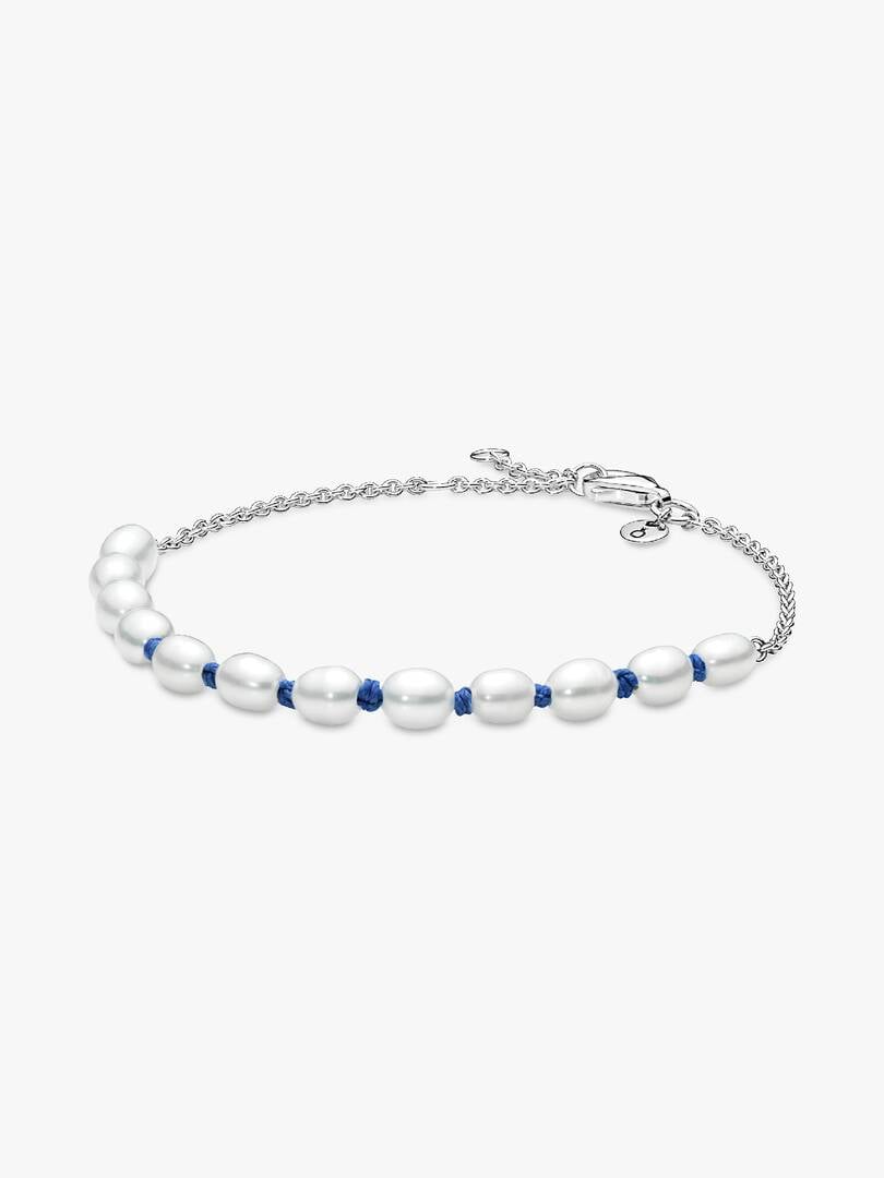 FINAL SALE – Treated Freshwater Cultured Pearl Blue Cord Chain Bracelet | Sterling silver