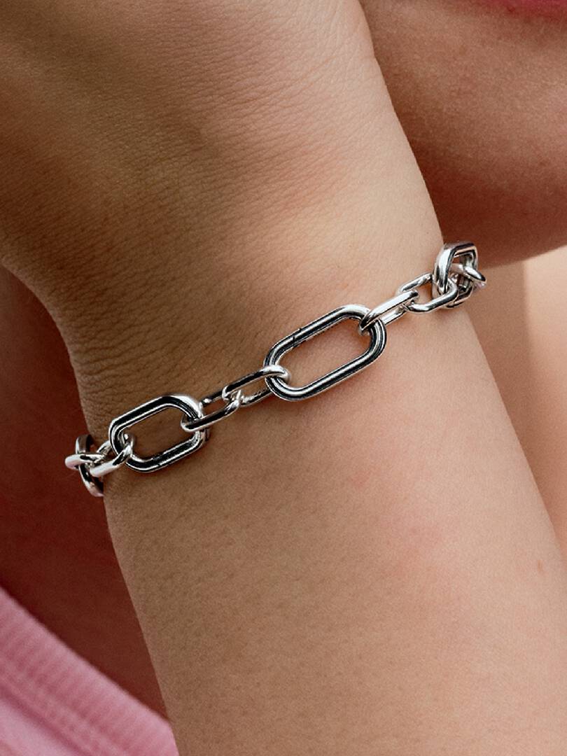 Enhance your styling possibilities. This sterling silver bracelet features five smaller links interlocked with five larger openable links. Links can be swapped out or added, and each openable link can be styled with dang