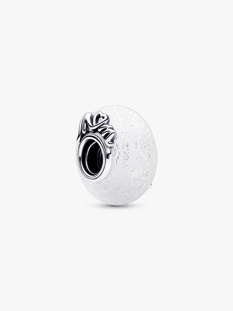 Glittery White Murano Glass Mom & Love Charm | Pendant | Sterling silver