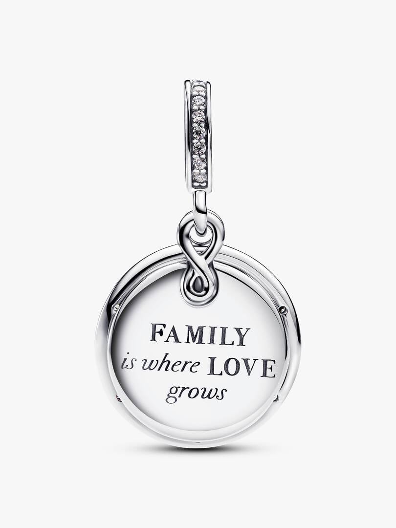Love and family light the way with our Glow-in-the-dark Infinity Tree Double Dangle Charm. Crafted in sterling silver, one dangle features an infinity tree to represent our never-ending connections. The other shines with