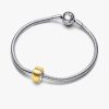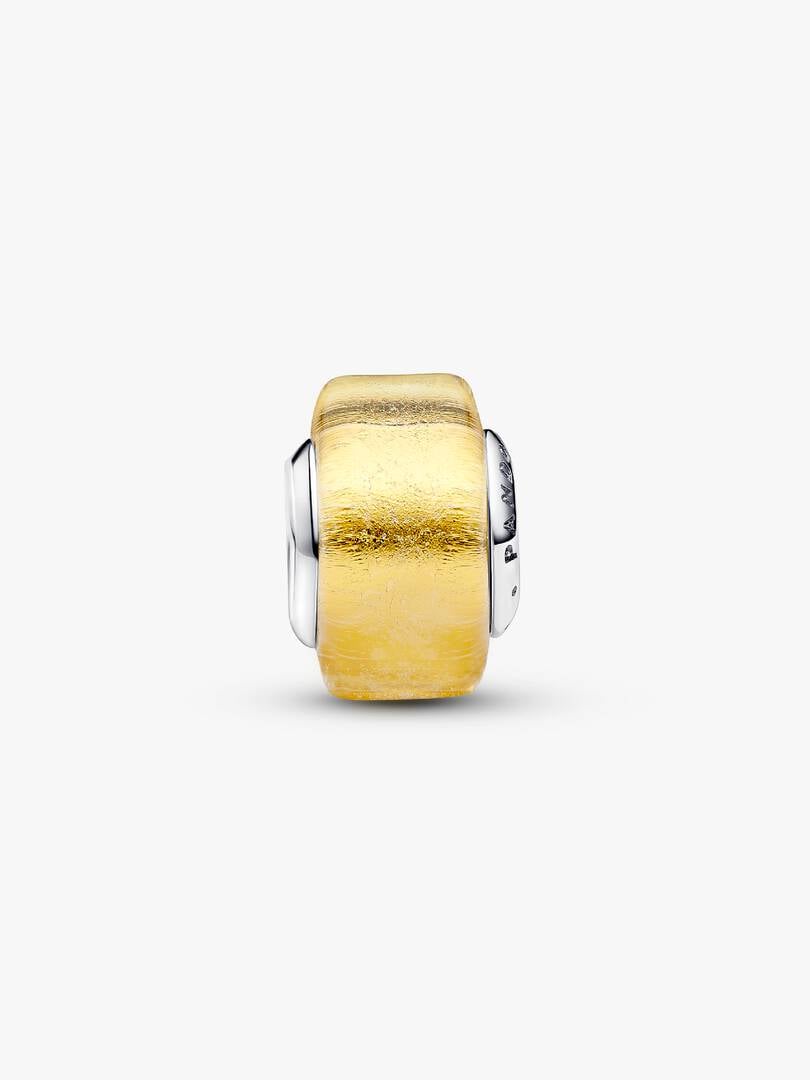 A classic design gets a golden-hued update in the Golden Mini Murano Glass Charm. Shining 24k gold foil is visible on the sterling silver core of this charm through transparent Murano glass, creating a two-toned effect.
