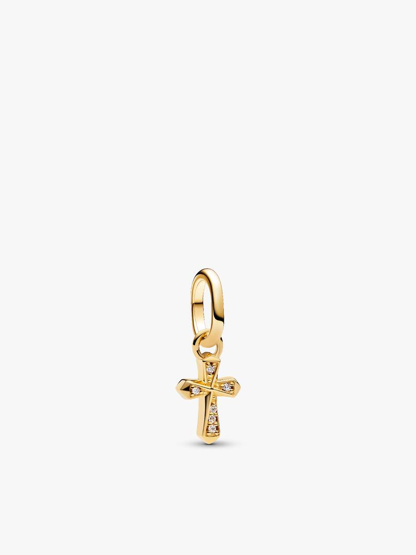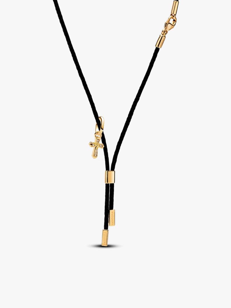 Faith meets function. This set includes a black gothic chocker made from recycled polyester and a 14k gold-plated mini cross featuring raised microbead details on one side and sparkling pavé-set stones on the other.