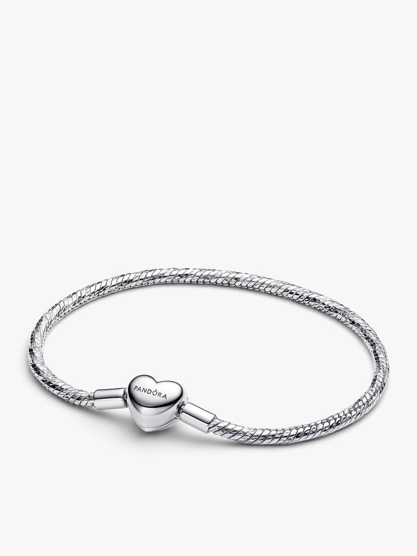 Lead with the heart and lock down this snake chain bracelet. Crafted in sterling silver, it features a twisted chain with an engravable heart clasp to leave your mark.