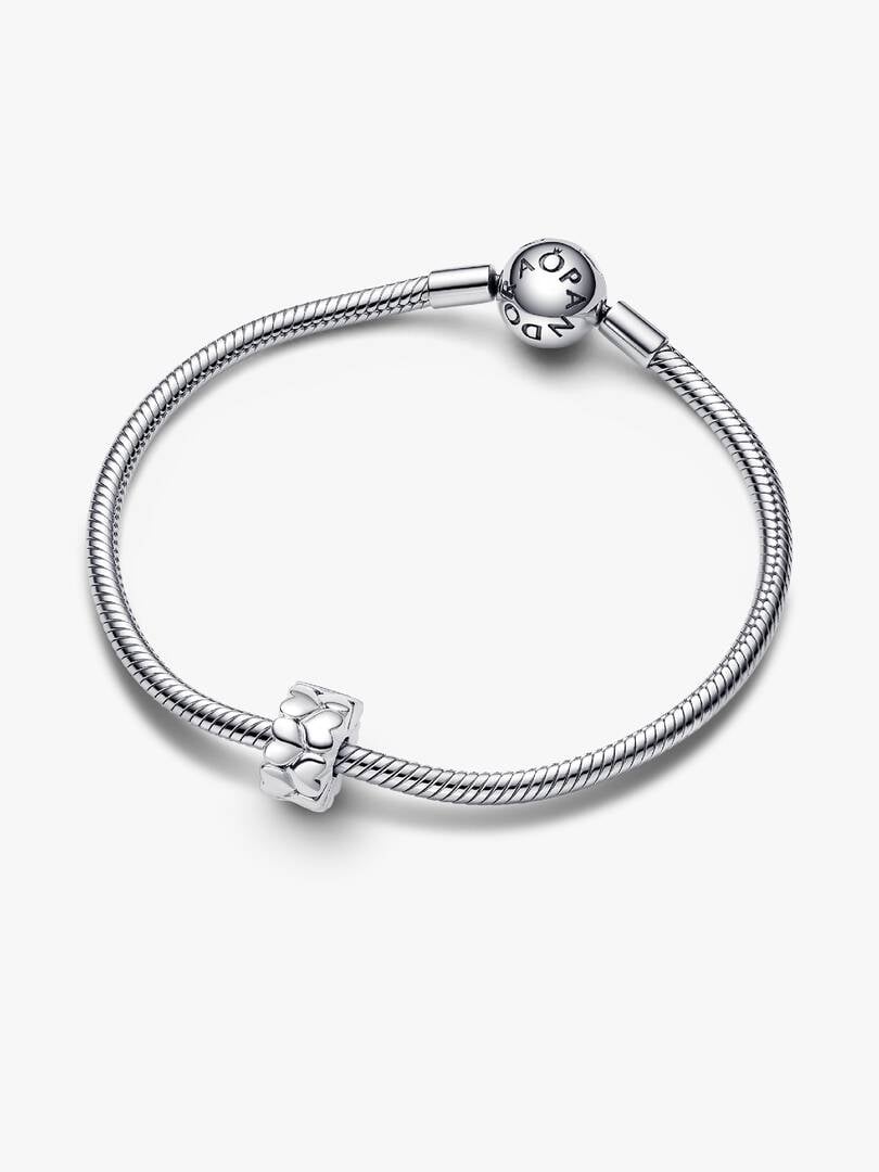 The Heart Pattern Clip Charm is a new addition to the brand Moments collection. This sterling silver charm features an endless pattern of alternating heart shapes that appear multi-dimensional. This clip-on heart charm