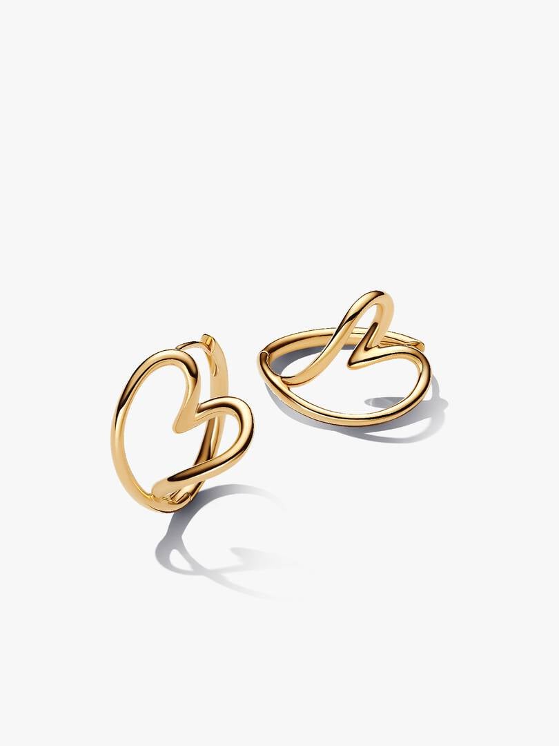 . Adjustable for versatility, this necklace lets you choose how the pendant hangs—at an angle or straight. The matching Organically Shaped Hoop Earrings feature abstract openwork hearts, inspired by the natural world, and are finished in 14k gold plating. With their simple click closure and mirrored design, these earrings pair effortlessly with the necklace for a modern take on love and nature.