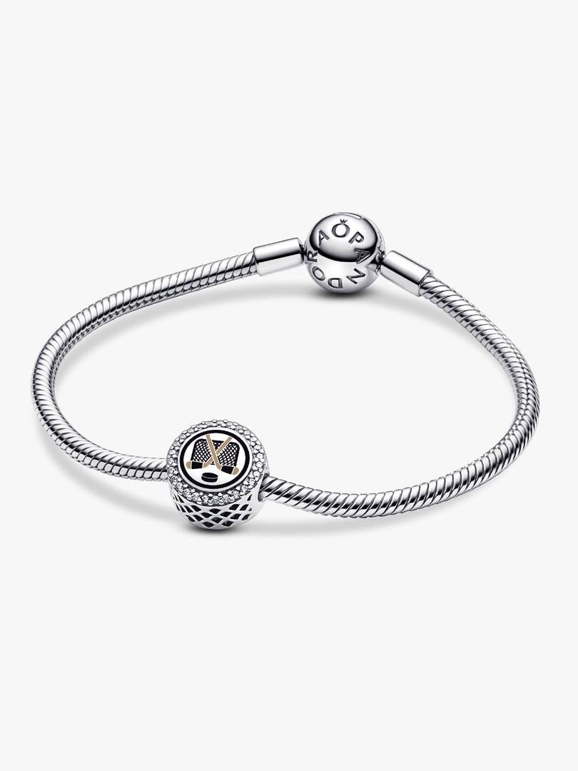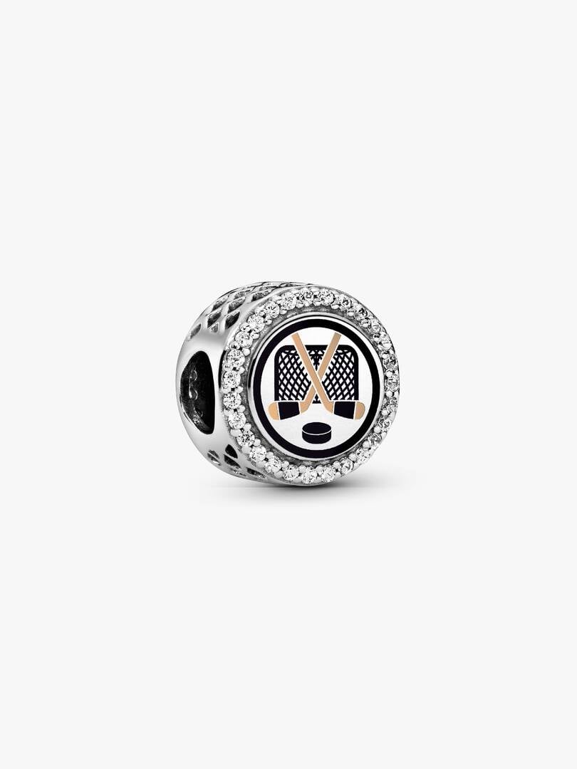 Hit the ice in style with this sterling silver hockey charm, detailed with cubic zirconias and a blank back ready for your custom engraving.