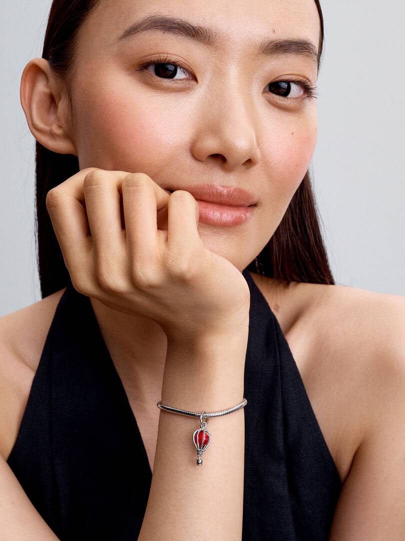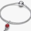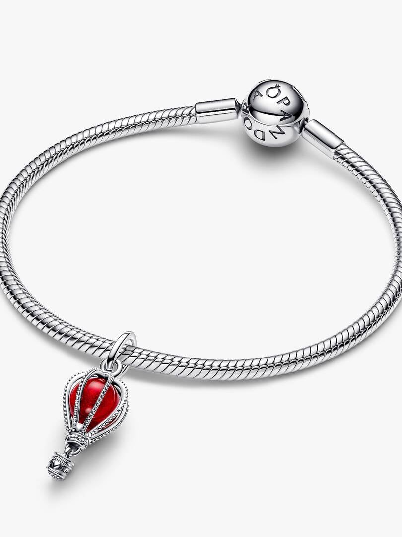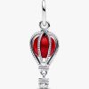 Reach new heights with the Hot Air Balloon Murano Glass Dangle Charm crafted in sterling silver. A red Murano glass balloon is encased in microbeaded panels, while below the balloon, a small gondola awaits to transport y