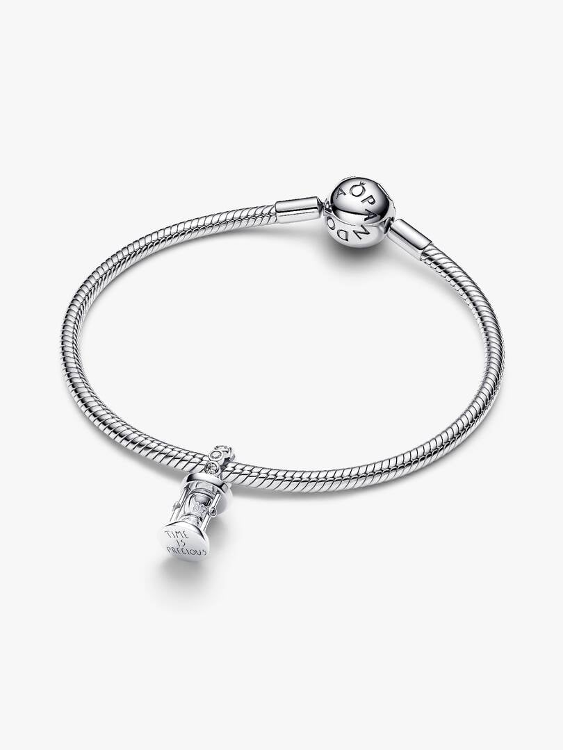 Time never stands still. This sterling silver Hourglass Dangle Charm features sparkling cubic zirconia, moveable stones inside and the engraving ‘TIME IS PRECIOUS’. Wear it as a reminder to treasure every moment.