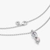 Bring a pop of pink to your neckline with the Infinity Knot Collier Necklace. This sterling silver necklace features a pink lacquered artificial pearl nestled inside an infinity knot symbol, which is set with sparkling s