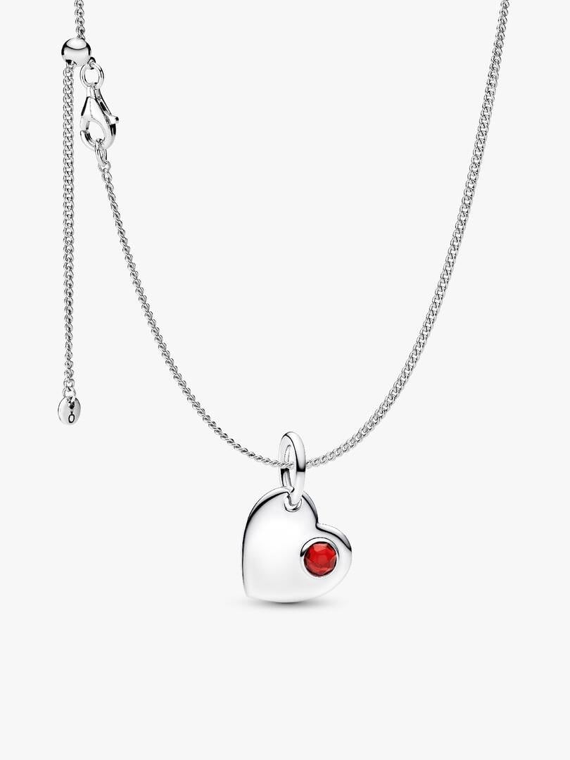 January babies, wear your birthstone color close to your heart. This sterling silver set includes a necklace and a dangle heart charm set with a sparkling red man-made crystal.