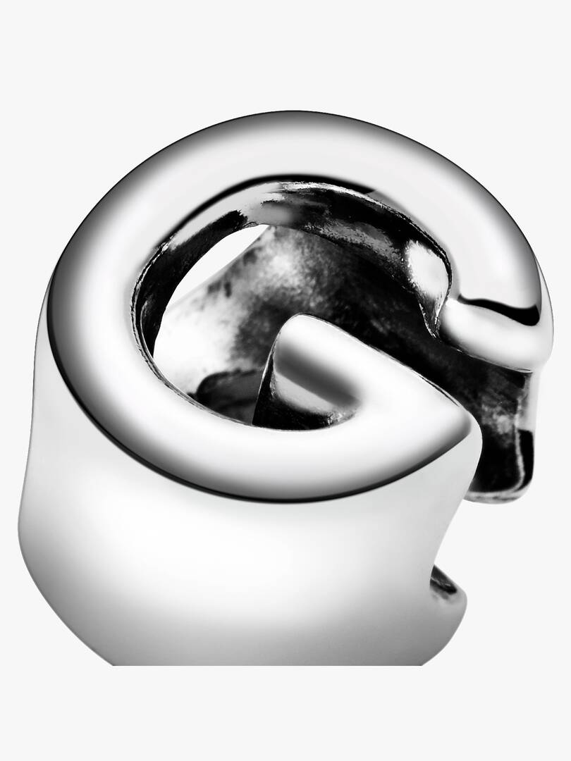 r G. The reversible sterling silver charm is polished on the front and feature raised hearts and beads on the back. Add the letter G to your charm collection or gift it to someone that’s got a special connection to the letter.