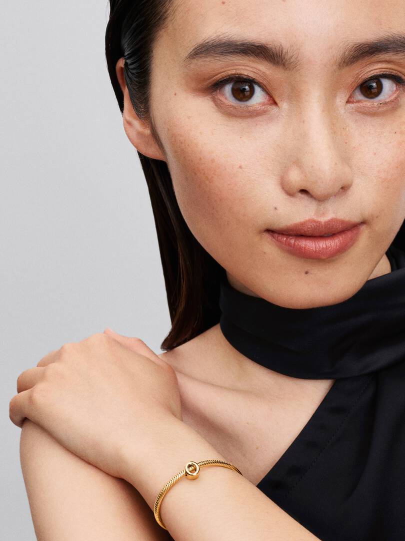 Celebrate personalization with a letter charm, featuring a rounded profile and 14k gold-plated finish.