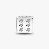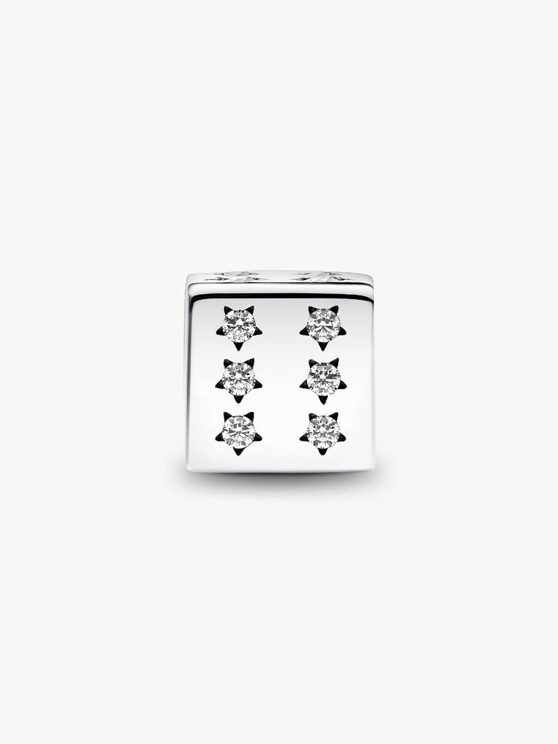 This six-sided sterling silver dice features round stones in star settings on each side representing numbers one, three, four and six.