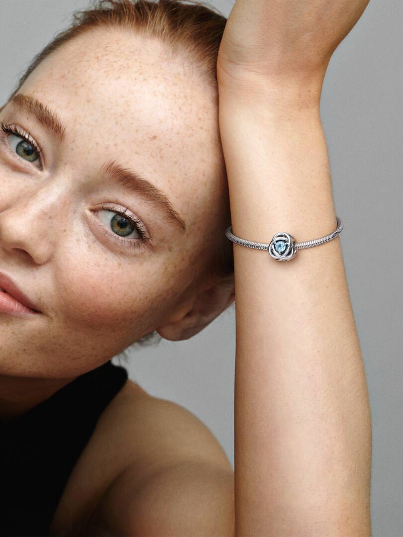 March Sea Aqua Blue Eternity Circle Charm | Pendant | Sterling silver