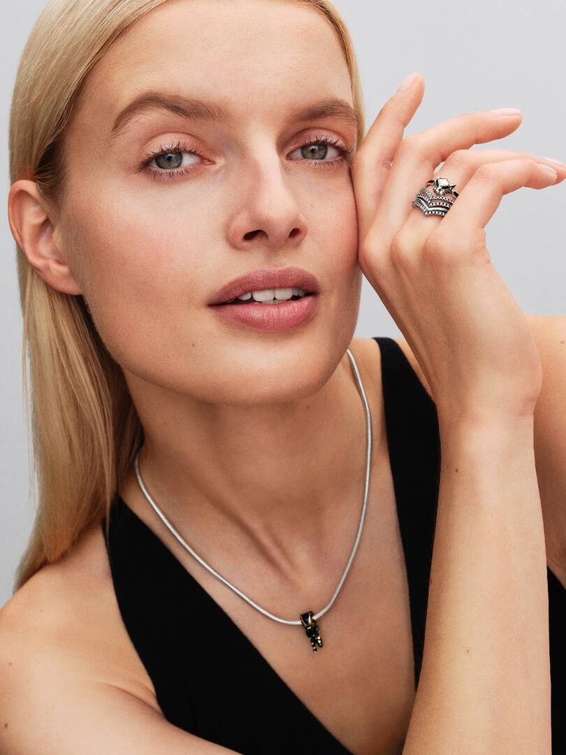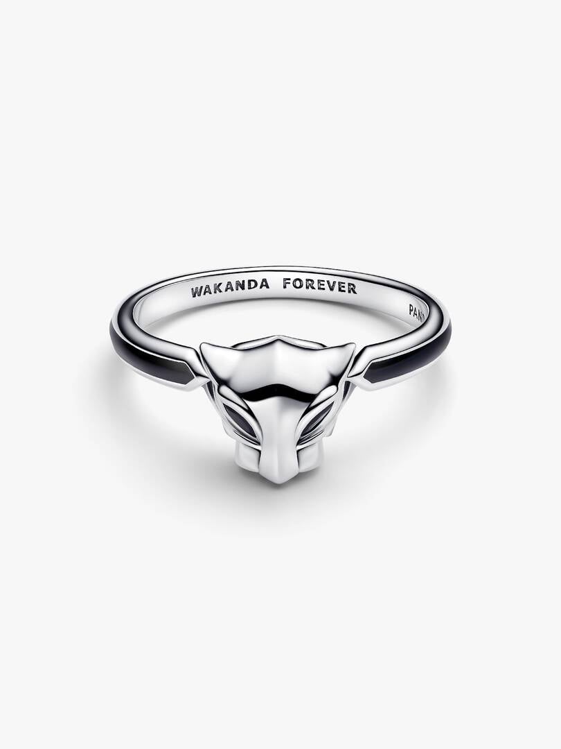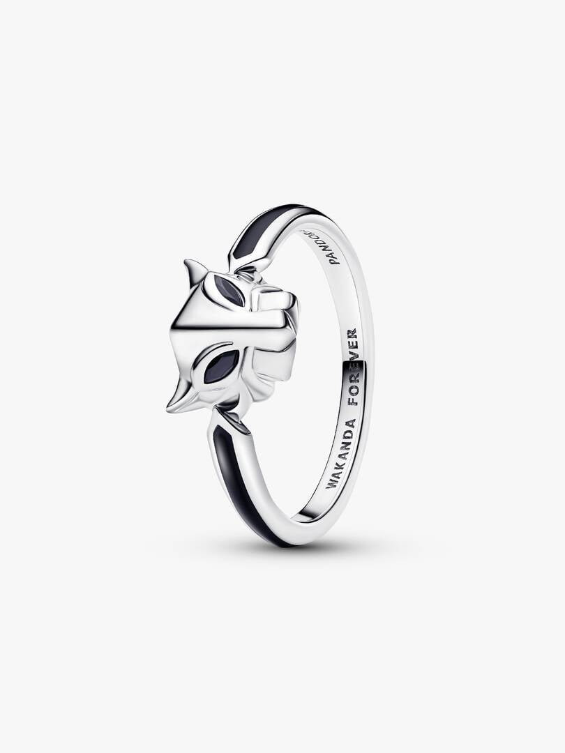 Channel the power of Wakanda’s legendary warrior king with a ring inspired by Marvel’s Black Panther. Made of sterling silver and set with two black man-made crystals, it features a ‘WAKANDA FOREVER’ engraving.