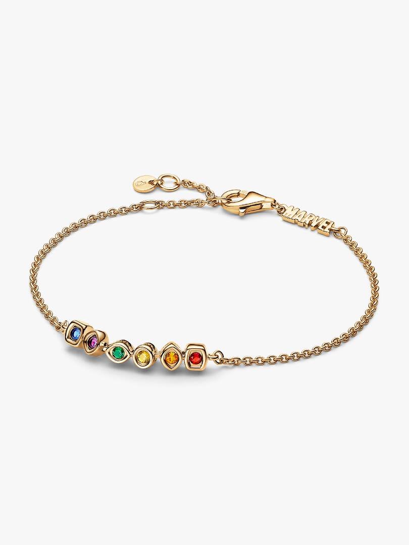 s. Symbolizing the six Infinity Stones from The Avengers, the crystals are bezel-set in different shapes, with each featuring a unique color and message: red (“REALITY”), orange (“SOUL”), yellow (“MIND”), green (“TIME”), purple (“POWER”) and blue (“SPACE”). This Marvel x brand bracelet is a must-have for Marvel fans.