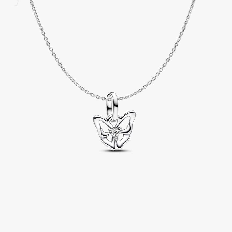 The Mini Butterfly Charm Necklace Set symbolizes freedom and individuality. With an adjustable sterling silver chain and a delicate butterfly charm, it’s a timeless piece with openwork wings and a sparkling center stone.