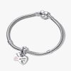 This set includes two beautiful pieces of jewelry that celebrate the special bond between a mother and daughter. The first item is the Double Heart Split Dangle Charm, a sterling silver double dangle charm, one with a cu