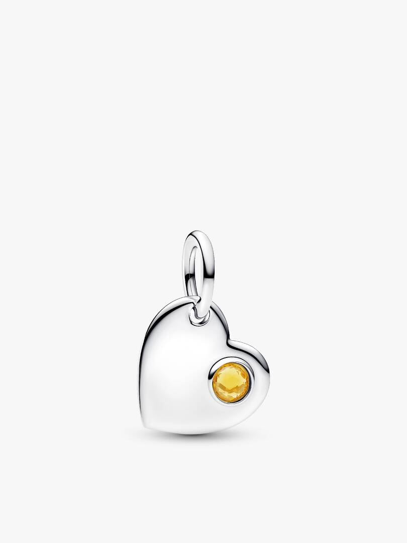 November babies, wear your birthstone color close to your heart. This sterling silver set includes a necklace and a dangle heart charm set with a honey-colored man-made crystal.