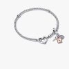 th an infinity symbol detail. It can be styled with up to 14-18 charms or dangle charms on the three sections divided by the two threaders. Paired with the bracelet is a hand-finished two-tone triple dangle charm with key, padlock and heart motifs. The sterling silver key is engraved with the words “The key” and the 14k rose gold-plated padlock features the engraving “To my”, referencing the sterling silver heart charm embellished with pavé. A keyhole-shaped clear cubic zirconia adds sparkle. Give this set to the one who holds the key to your heart – whether that’s yourself or someone else.