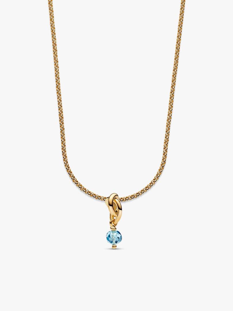 d circle above. With its twisted infinity motif and shimmering pop of blue, March’s symbolic charm is perfectly styled on a 14k gold-plated chain necklace for a look that’s as beautiful as the birthday it celebrates.