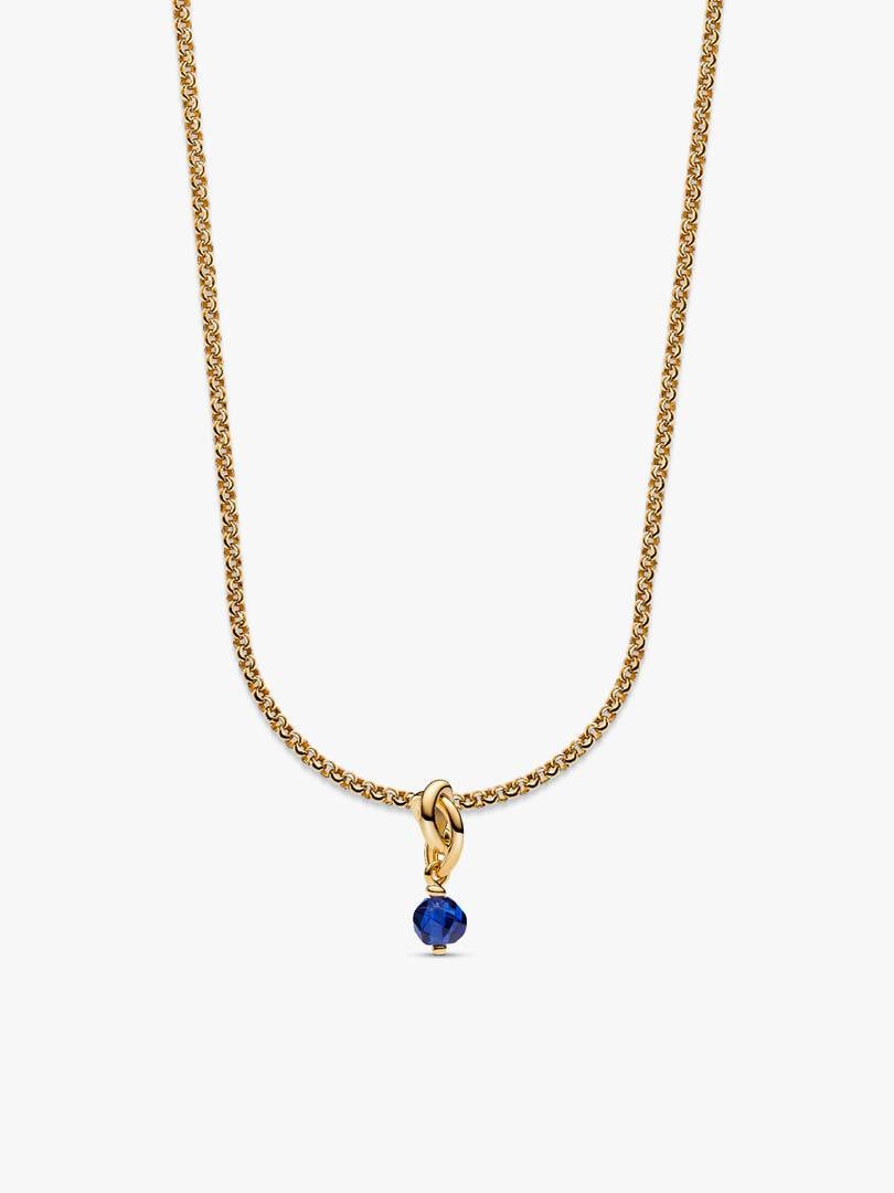 otted circle above. With its twisted infinity motif and bold pop of blue, September’s symbolic charm is perfectly styled on a 14k gold-plated chain necklace for a look that’s as beautiful as the birthday it celebrates.