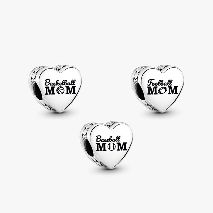 Celebrate your sports pride with the Sports Mom Charm Trio. Featuring Baseball, Basketball, and Football Mom charms, each with heart accents and engravable backs, this set honors your support and love for the game.