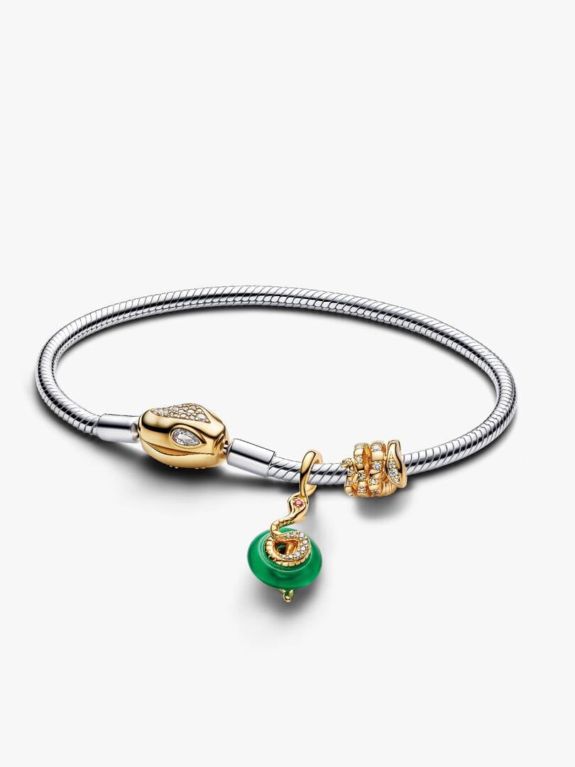 ilver snake chain, representing wisdom, intuition, and transformation. Paired with the 14k gold-plated Snake Charm, showcasing intricate scaled details and shimmering cubic zirconia, and the Snake Green Murano Glass Dangle Charm, where a gold-plated snake rests atop deep green Murano glass, this set is the perfect emblem of renewal and intention for the Lunar New Year. A timeless gift to mark 2025 in style.