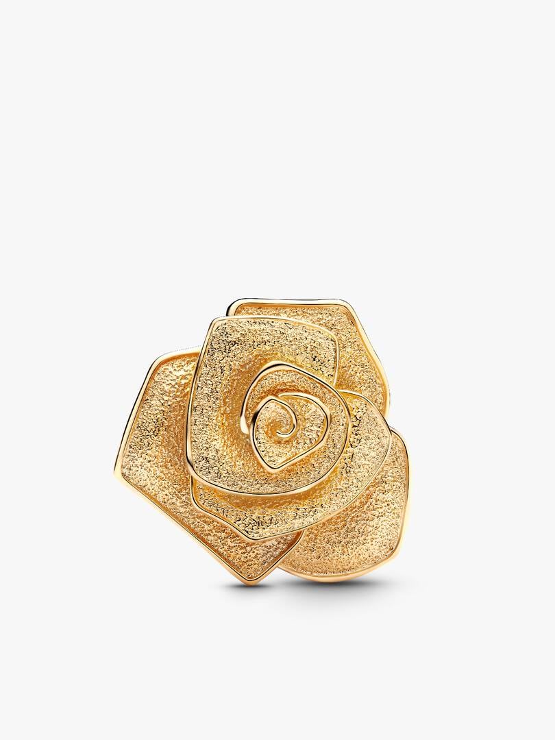 Embrace the beauty of a golden rose with the Golden Rose in Bloom Charm Bracelet Set. The Rose in Bloom Oversized Charm, crafted in 14k gold plating, features a bold rose motif with a diamond-point texture and polished p