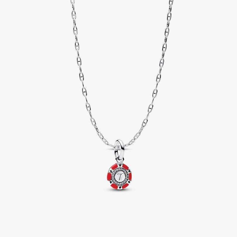 Manifest luck with this charm necklace set featuring a sterling silver anchor chain necklace and the Lucky Chip Dangle Charm detailed with cubic zirconia and painted enamel. Flip it for the engraved message “Lucky chip.
