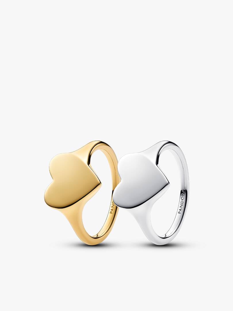 The best of both worlds — mixed metal stacking meets personal meaning. This set features 14k gold-plated and sterling silver heart rings, both ready to be engraved with your love notes. Style and sentiment, united.