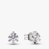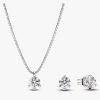 round brilliant excellent cut lab-grown diamond set in 14k white gold. An asymmetrical prong setting frames the stone and is attached to the chain with a hidden jump ring, making the pendant appear to float on the neckline. The 14k white gold necklace chain is adjustable to two lengths. The matching earrings feature a 0.25 carat round brilliant excellent cut lab-grown diamond in each earring, with a total carat weight of 0.50. Wear this beautiful set as a symbol of the unique light within all of us.