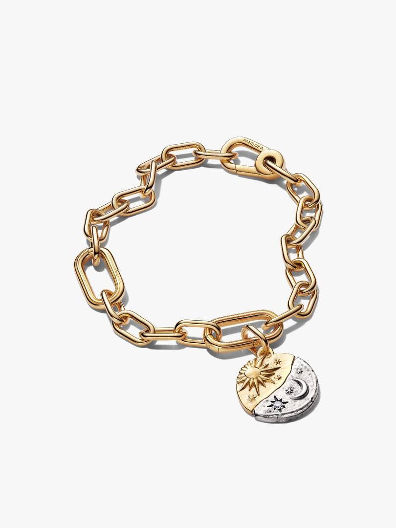 Make the sky your limit with this sterling silver and 14k gold-plated bracelet set. One side of the medallion is inspired by celestial motifs while the other is engraved with an inspiring Latin message.