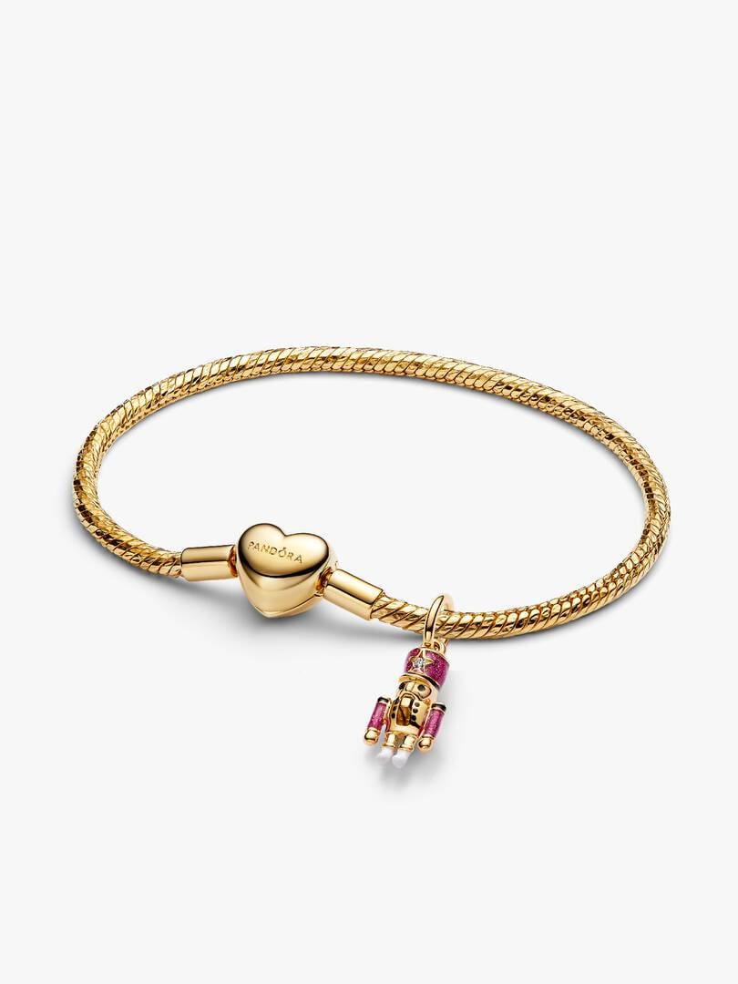 Turn up the holiday charm with our nutcracker and bracelet duo. Our 14k gold-plated charm features realistic details like enamel eyes and a moveable mouth. It’s ready to style on our bestselling snake chain bracelet.