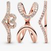 Rose, on rose, on rose and a whole lotta sparkle! This rose gold-plated ring set is absolutely fabulous. Wear it as a ring stack all on one finger or wear one on each finger. Either way, this ring set is sure to slay!