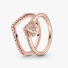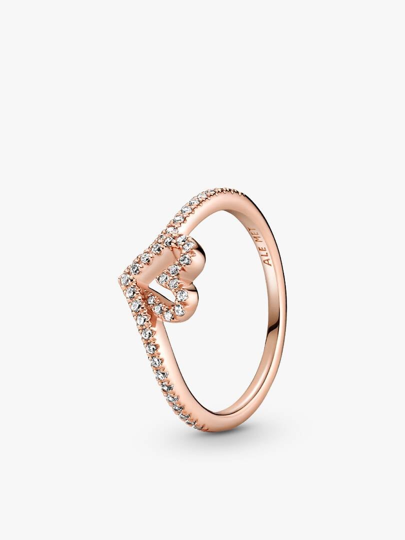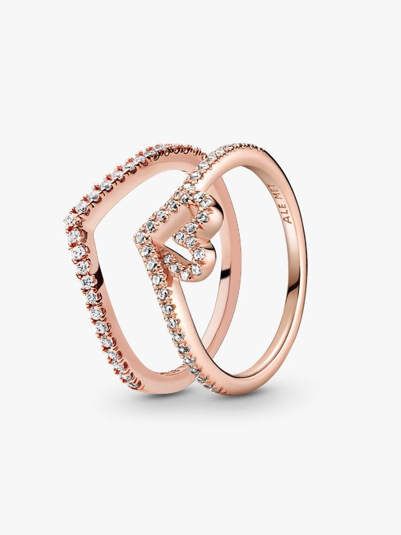 This ring set is full of sparkle, style and a lot of love. The rose gold-plated Sparkling Wishbone Heart Ring shines with a fluid design that blends a shimmering stone-embellished heart into the ring’s wishbone V-shape