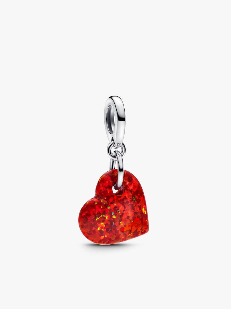 Add a bold pop of color to your look. Featuring a heart-shaped red lab-created opal that shimmers with a mesmerizing spectrum of colours, this hand-finished charm is crafted from sterling silver. The heart dangles at an