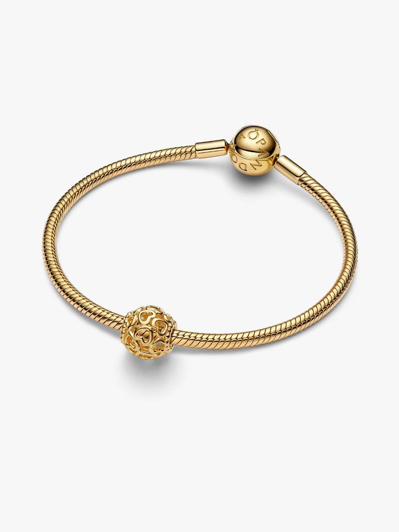 Celebrate everlasting love with this 14k gold-plated charm, featuring openwork hearts and delicate microbeading—designed to reflect the connections that make us who we are.