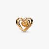 A precious symbol of love in its many forms. The Openwork Swirling Heart & Treated Freshwater Cultured Pearl Charm is crafted from 14k solid gold and takes the shape of an openwork heart, formed by multiple intertwining