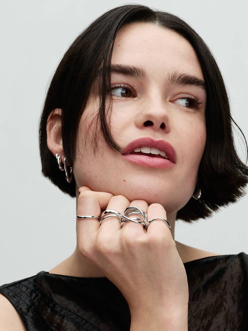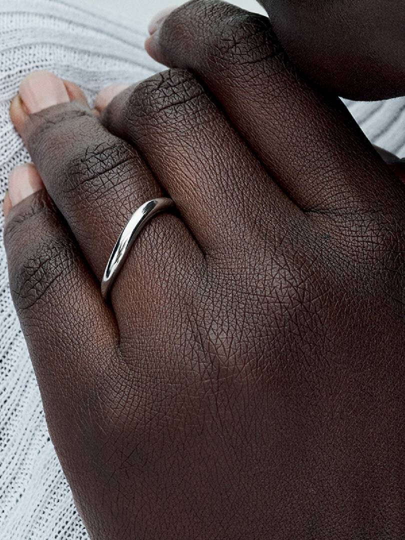 f a standard linear silhouette, this ring’s curves make it a fresh addition to your favorite stack. Use it as an accent piece to pair with different metal tones, stones and colors, or stack similar simple styles for a sleek result.