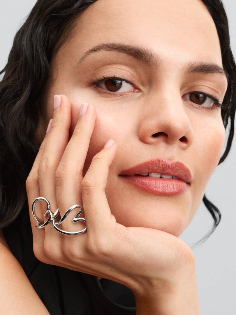 Bring love and nature together with the Organically Shaped Heart Ring. A subtly wavy sterling silver band splits into an imperfectly-shaped openwork heart that follows the finger horizontally at the front. When worn, onl