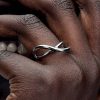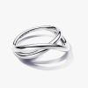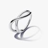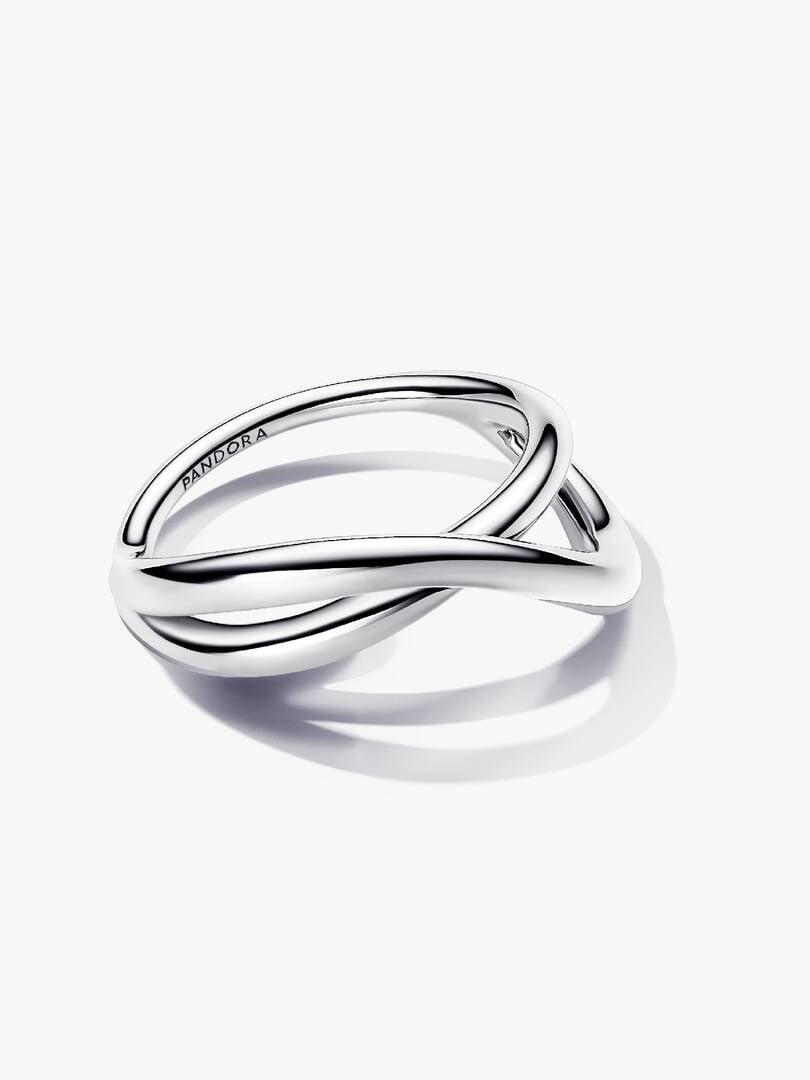 Bring dimension to your look when you wear the Organically Shaped Infinity Ring. This sterling silver ring splits into two overlapping bands, connected at the back. Both bands have a with a slight wave and varied width f