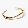 The Organically Shaped Open Bangle is a modern style essential. This 14k gold-plated bangle features a wavy profile that varies in thickness. Inspired by the natural lines and curves found in nature, this modern piece is