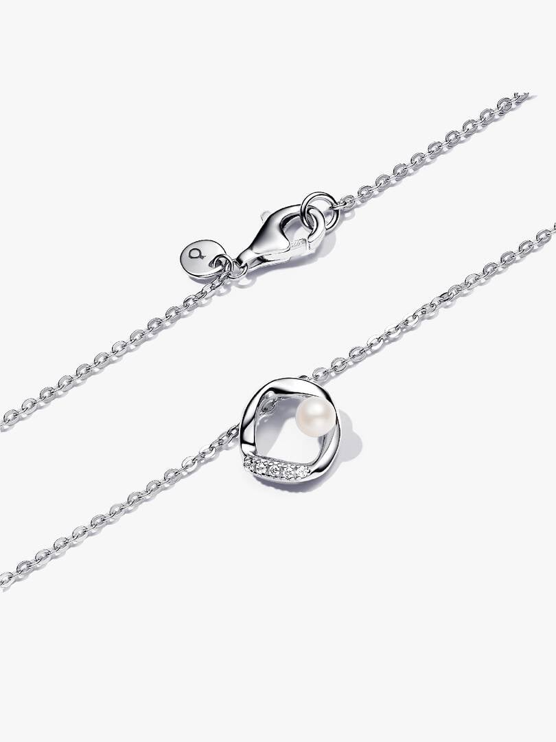 Classic gets a refresh with the Organically Shaped Pavé Circle & Treated Freshwater Cultured Pearl Collier Necklace. This necklace features an organically-shaped sterling silver circle pendant with one treated freshwater