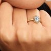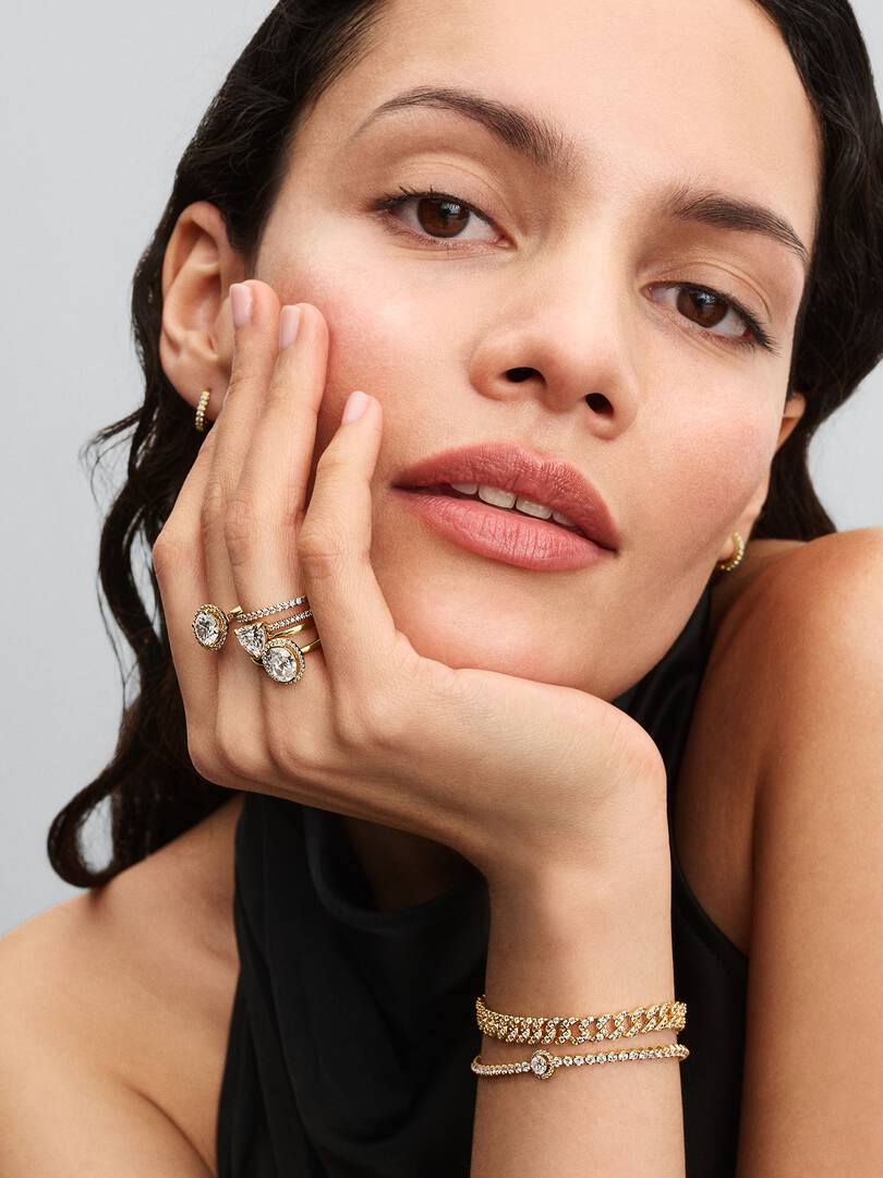 A raised oval stone framed by a pavé halo brings timeless elegance to this stackable design. Designed for stacking or solo wear, it adds brilliance and elegance to every look.