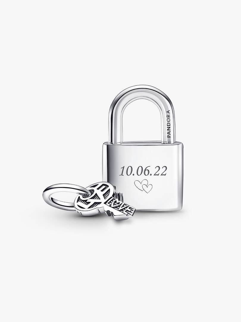 elry, or gift it to a loved one, so only they have the power to unlock your padlock. Inspired by the locks placed on bridges by lovers all around the world, this sterling silver Padlock and Key Charm is the perfect symbol to capture your love. Compatible with necklaces and bracelets, wear yours around your neck as a pendant or as a charm on your bracelet and let the one you love carry the key to your padlock – and your heart. Please note: the key should not be worn inside the padlock.