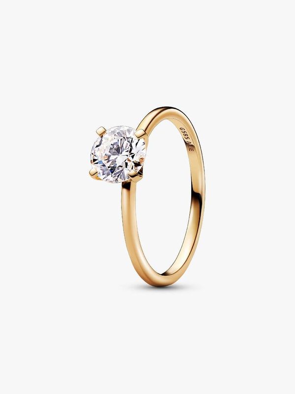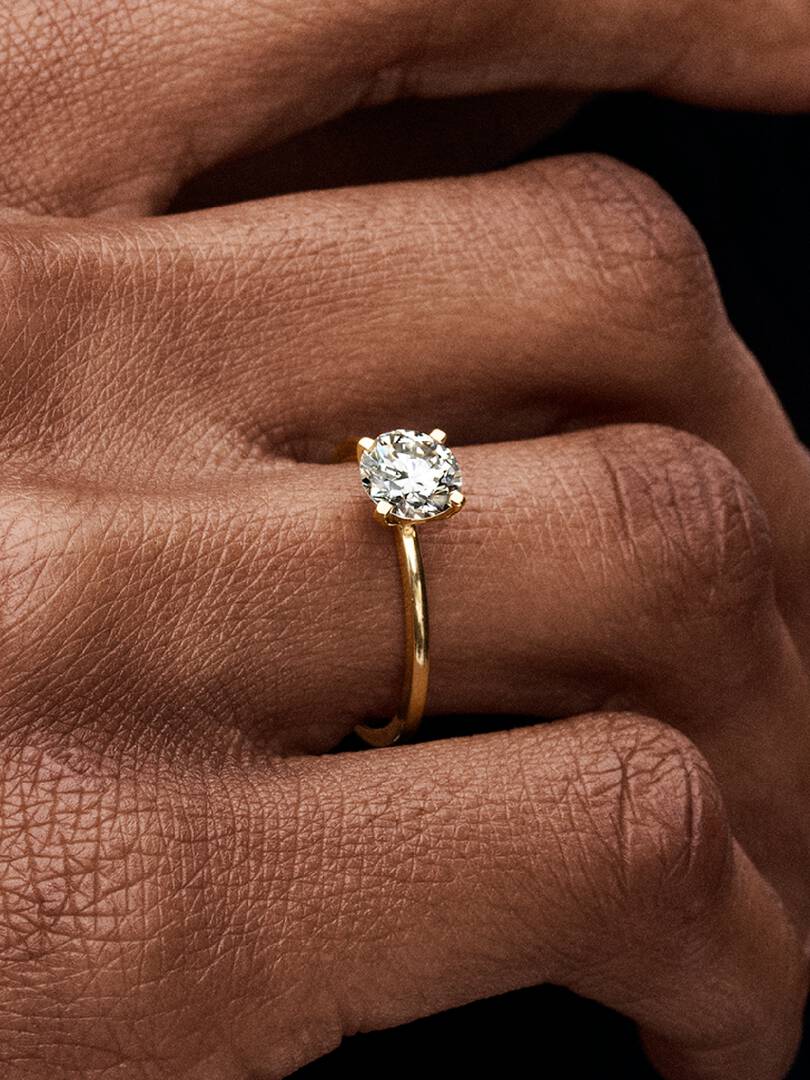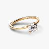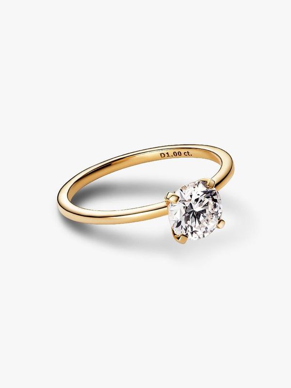 A fresh twist on a classic. The brand Era 14k Gold Lab-grown Diamond Ring showcases a 1.00 carat round brilliant excellent cut lab-created diamond in a four-prong setting that combines round and flat profiles, creating