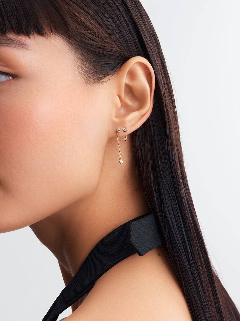 Meet your new “I’m never taking them off” earrings. Two 14k solid gold paperclip chains hang between two bezel-set lab-grown diamonds with 0.12ct TW – one at the stud and one at the end of the drop. Surprise someone spec