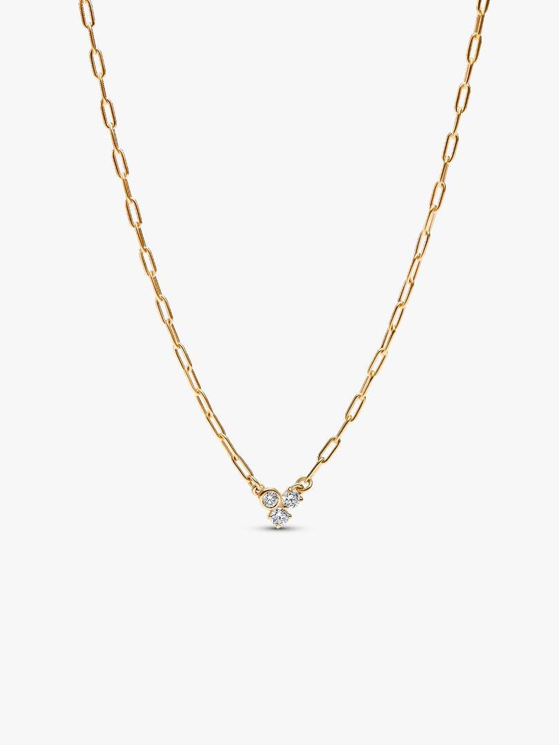 Elevate your everyday look with this refined necklace, featuring a trio of lab-grown diamonds. Crafted from solid 14k gold, this adjustable piece is versatile for layering or as a standalone accent. The delicate cluster