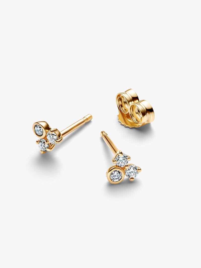 Crafted from 14k gold, these earrings feature a cluster of three lab-grown diamonds with a combined total carat weight of 0.19ct. Two diamonds are prong-set while one is bezel-set, creating a harmonious interplay of sett